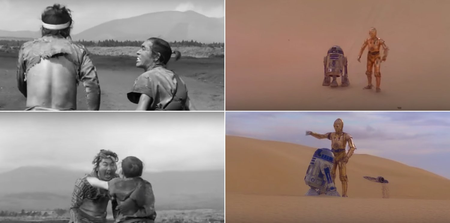 Going back to the droids at hand, R2 and 3PO still crash on a desert planet in the rough draft. Akira Kurosawa’s 1960 film The Hidden Fortress, which told its story from the point of view of two cowardly, bumbling peasants, inspired George Lucas for the story of Star Wars.